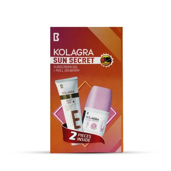 1. Kolagra Sun dry touch gel cream SPF50+.50ML Broad spectrum Gel cream with antioxidant to maximize protection from UVA&UVB which can destroy skin, it combined both chemical and physical filter without residue on the skin . suitable for normal to combined skin. 2. Kolagra whitening Roll-on Berry 3*1 60ML • Kolagra Whitening roll on 3 in 1 Whitening , Anti-perspirant ,and Hair delaying. • It provides protection against sweat . • Safe and Effective . • makes your underarms whiter ,fresher and more vibrant. • Free From Alcohol and salts.